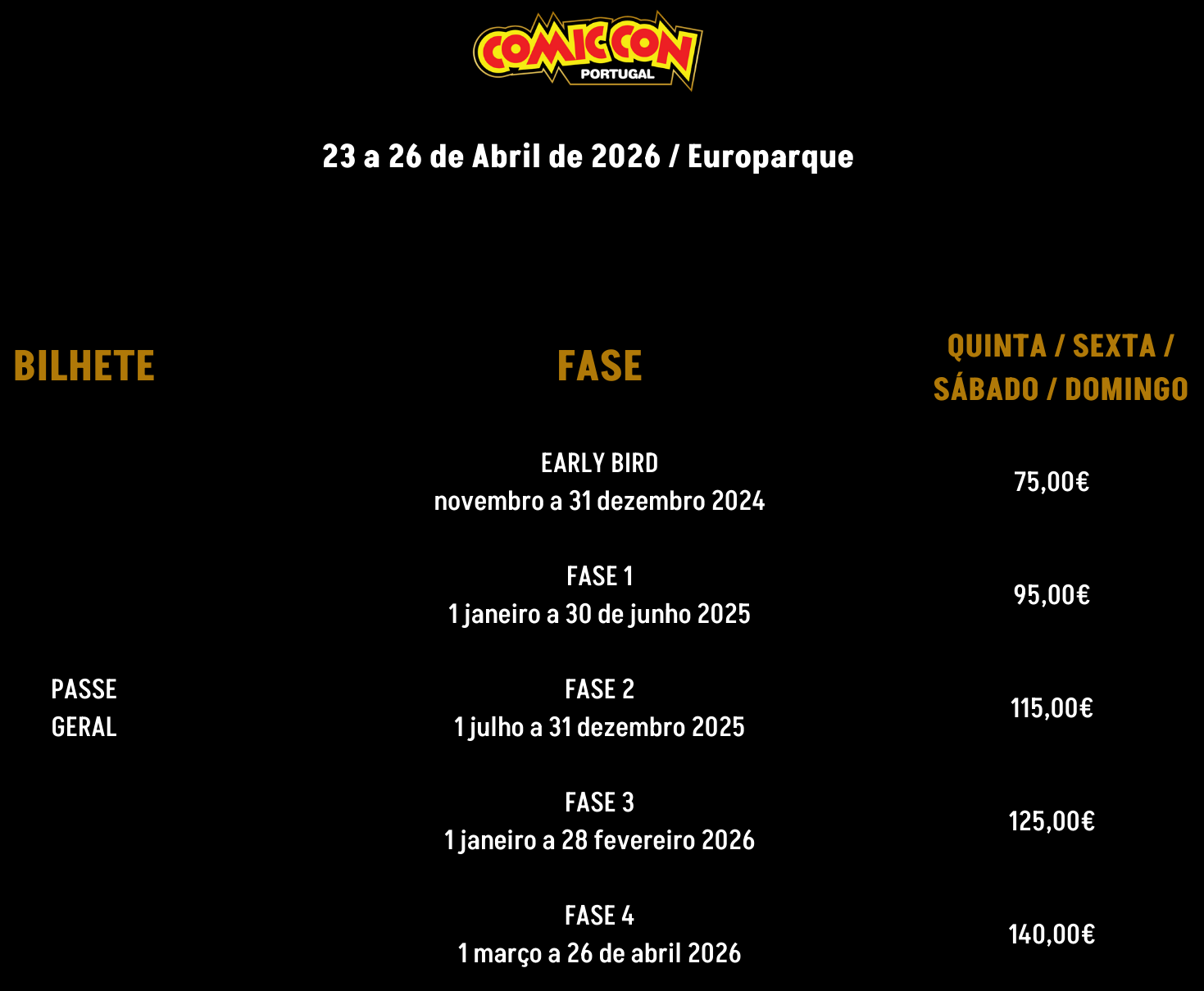 COMIC CON PORTUGAL 2026 - PASSE GERAL 4 DIAS